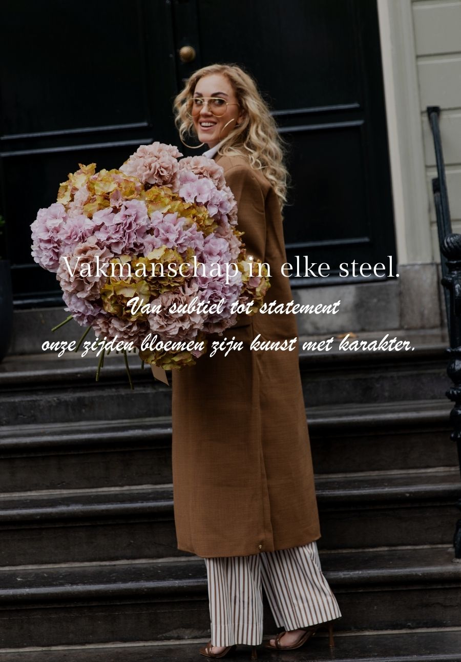 Ze zag hoe bloemen sfeer brengen, emotie oproepen, een ruimte zachter maken. Maar ze zag ook hoe tijdelijk die magie was. En dus begon ze opnieuw – met zijde, gevoel voor esthetiek en oog voor detail. Wat ontstond, was geen bloemstuk. Het was een beleving.