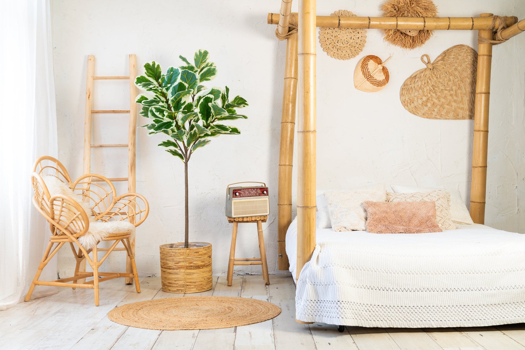 De slanke stam in combinatie met de volle bladkroon geeft de plant een elegante en moderne uitstraling. Perfect geschikt om een lege hoek in de woonkamer te vullen, een kantoorruimte een botanische touch te geven of als eyecatcher naast een kast of fauteuil. Dankzij het gebruik van hoogwaardige materialen behoudt de Ficus jarenlang zijn kleur en vorm, zonder dat water of zonlicht nodig is.