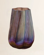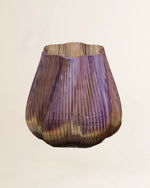 Deze elegante paarse luster vazen zijn echte blikvangers in ieder interieur. Het glanzende glas met ribbelstructuur zorgt voor een luxe uitstraling. Verkrijgbaar in 21 en 26 cm hoog, perfect voor kleinere zijden boeketten of als decoratief duo voor een stijlvolle setting.
