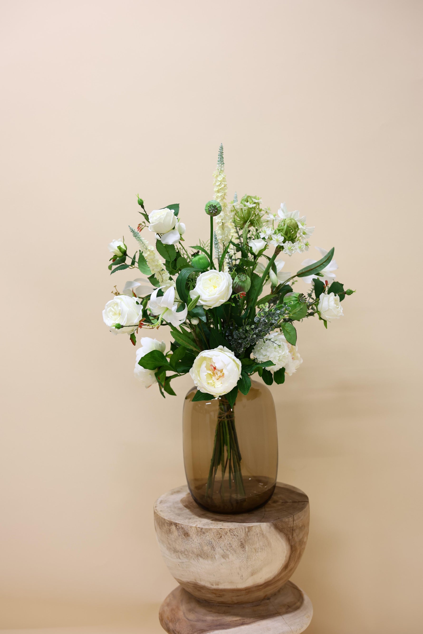 Stijlvol, tijdloos en elegant – dit wit-groene veldboeket brengt rust en klasse in elke ruimte. Met een natuurlijke mix van ornithogalum, rozen, papaver, lelies en pioenrozen is dit zijden boeket de perfecte balans tussen fris groen en zachte wittinten. Het voelt alsof je net een vers veldboeket hebt geplukt, maar dan blijvend mooi.