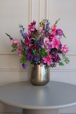 Wij adviseren altijd dat de vaas kleiner mag zijn dan het boeket, maar nooit groter. Zo blijft de verhouding mooi in balans en komt jouw zijden creatie het best tot zijn recht.