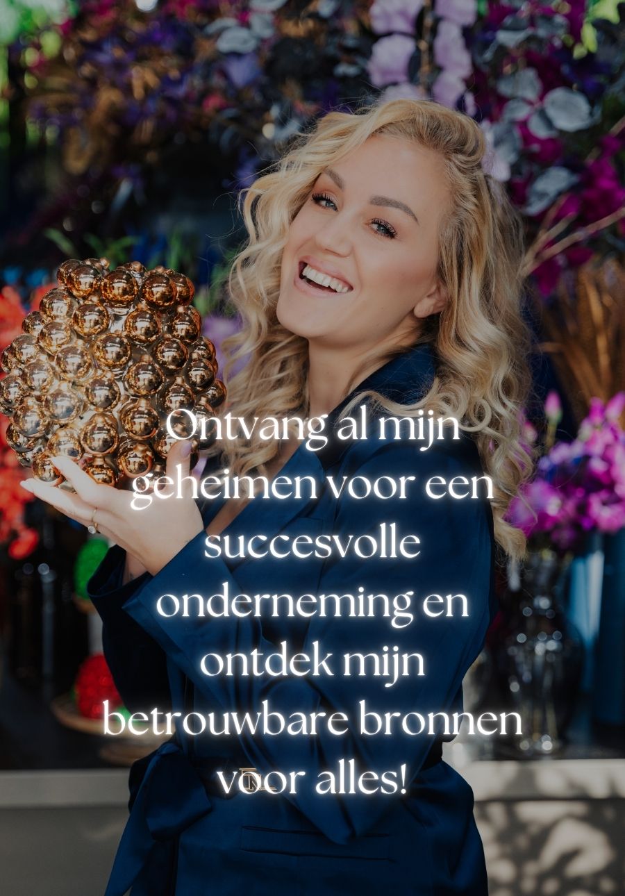 Ontvang direct toegang tot mijn geheimen voor een succesvolle onderneming en ontdek mijn betrouwbare bronnen voor zijdenbloemen, cheetah vazen, luxe potten, verpakkingen en takken. Upgrade je bloemencreaties met de hoogste kwaliteit materialen.